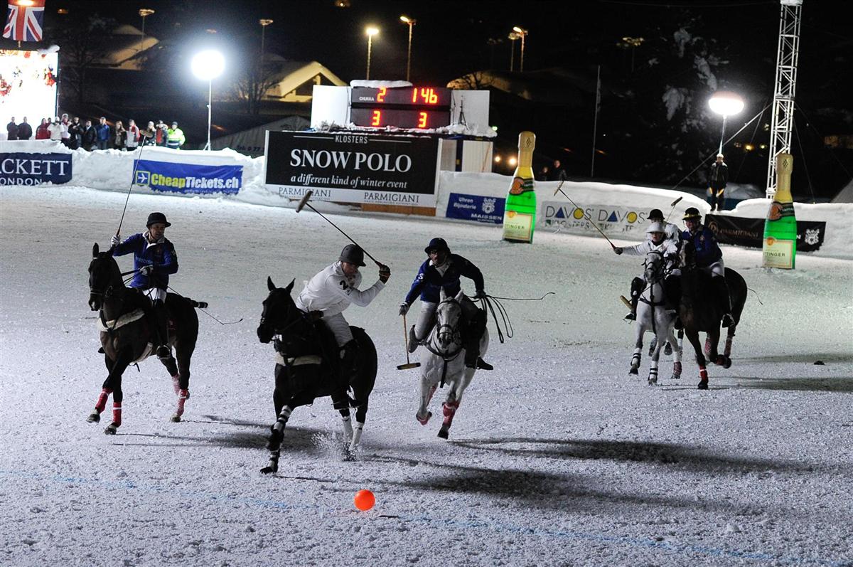 The Annual Klosters Snow Polo is a Winter Event that is Really Rather Different. A snow polo tournament in which many of the games are played after dark, a thrilling aspect devised specifically by the tournament founders, Alpine Polo Club, who are passionate about making the “sport of kings” more accessible to a wider public. Thanks to its unique snow area setting, spectators can get right up close to the action, literally able to reach out and touch the horses, which makes for an electrifying atmosphere.