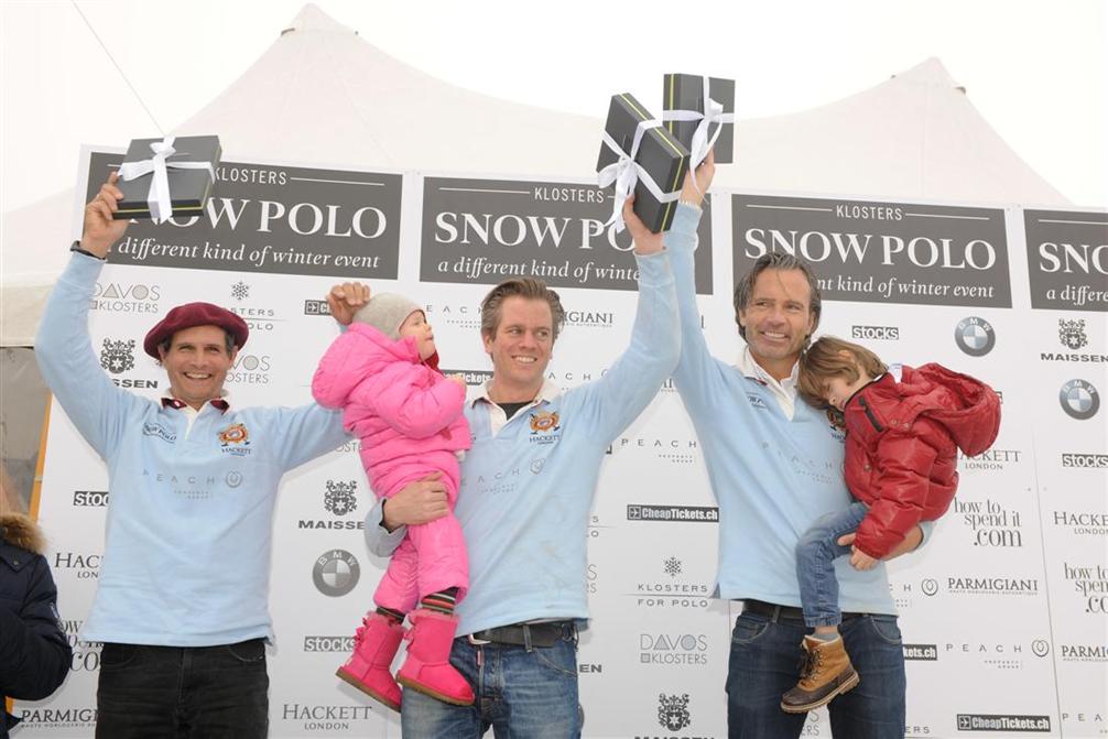 The all-English team for new team sponsor BMW with Sebastian Dawnay, Gavin Turner and David Lewis presented itself as a worthy opponent reaching the final of the tournament in Klosters, which went into overtime. Tournament Director Daniel Waechter, his daughters, Dayna and Jill Waechter and Marcel Geser with Oscar Mancini (team Duran Duran) took fourth place defeated by Tim Bown, Charlie Wooldridge and Paul Knights of Team Hackett with 9:15. Henry Brett, former England captain, alongside Cédric Schweri and Stefan Locher of team How To Spend It lost the fifth place to the Davos Klosters team of Jamie Morrison, Simon Arber and Spencer McCarthy who won with 14:9. Chris Kiesel and Dominik Velazquez, who lined up with the Swiss Martin Vogt for team CheapTickets.com lost the seventh place to the Peaches Property team of Dr. Thomas "Tuti" Wolfensberger, Peter Sander and Francisco Podesta who won with 10:6.